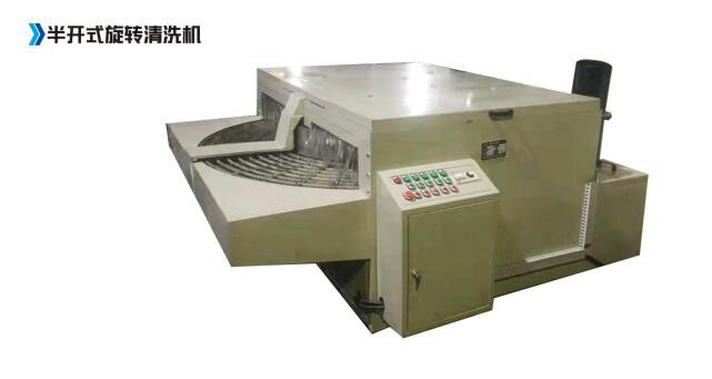 工藝流程:上料→高壓噴淋清洗→風干→下料 半開式旋轉清洗機的特點和封閉式旋轉清洗機的區(qū)別在于,工件放入,轉一圈又回到原點,方便與上下料。